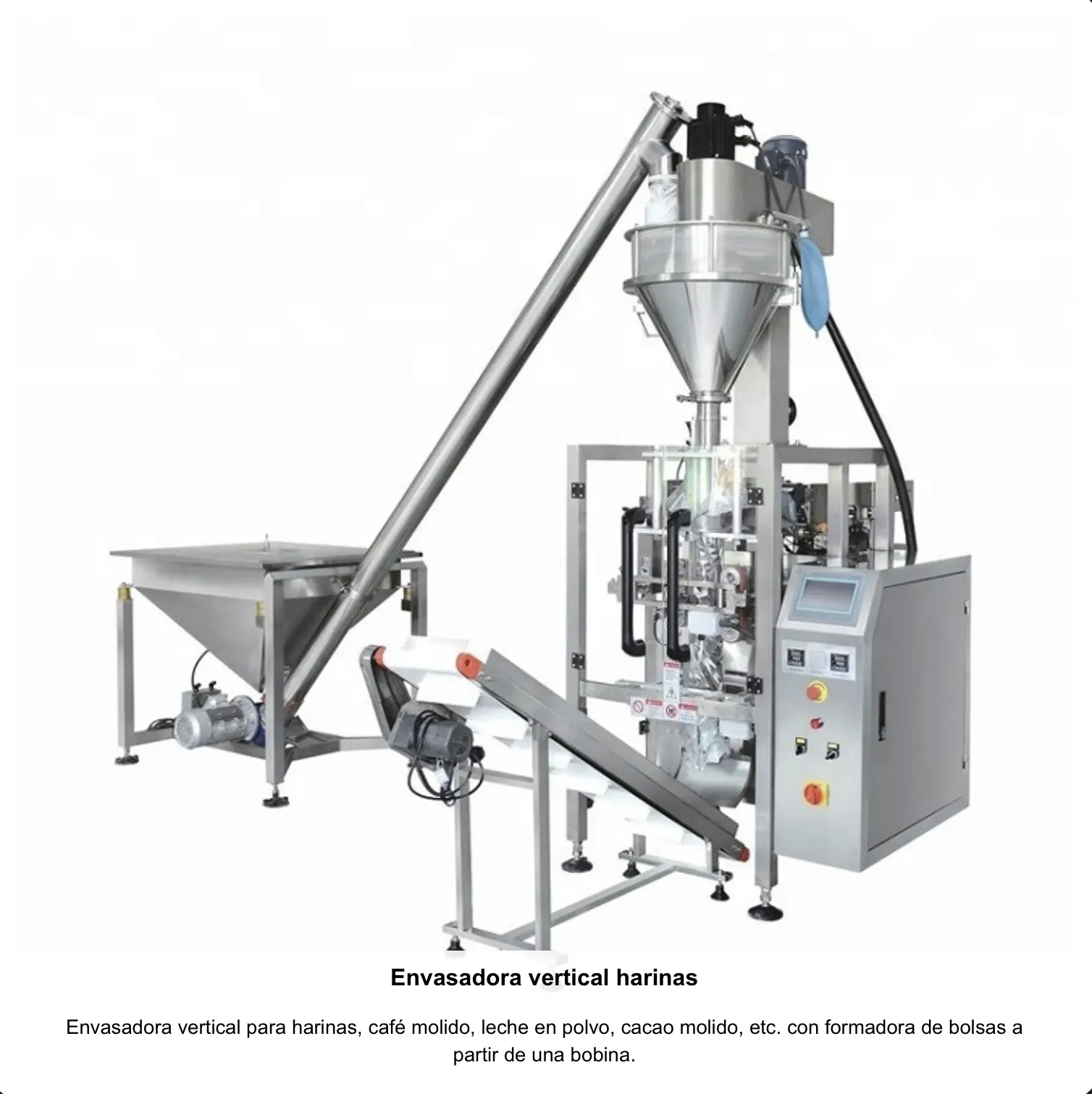 Maquinas envasadoras verticales: Perfectas para productos en polvo o harina, asegurando un proceso rápido y eficiente.